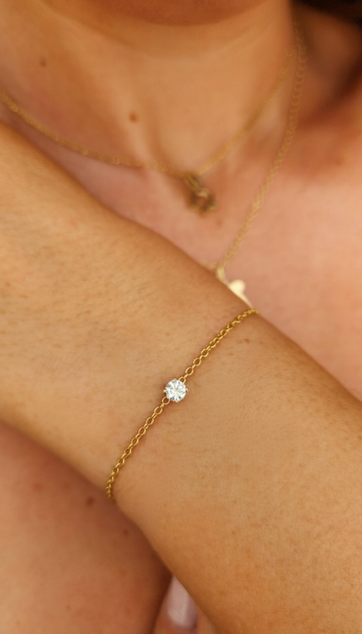 14K solid gold accented with a natural diamond/gemstone of your choice