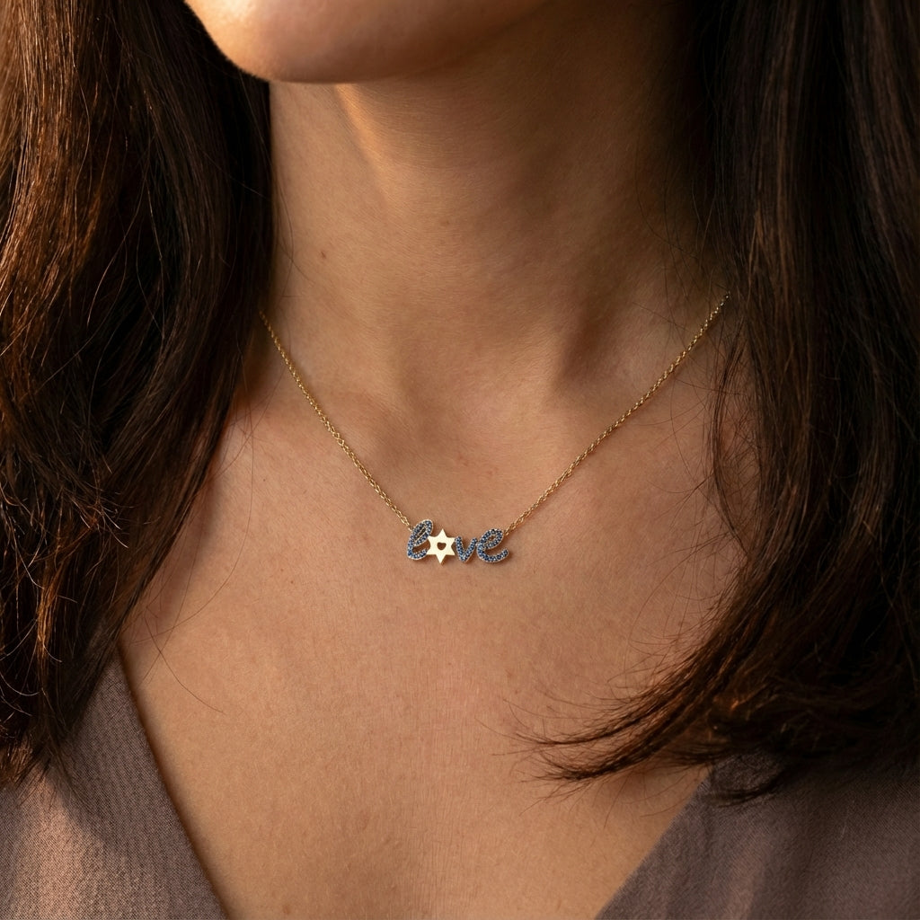 Wearing this Love Necklace adorned with a Jewish star of David is a beautiful expression of devotion and a reminder of your connection to the roots of your Jewish heritage.