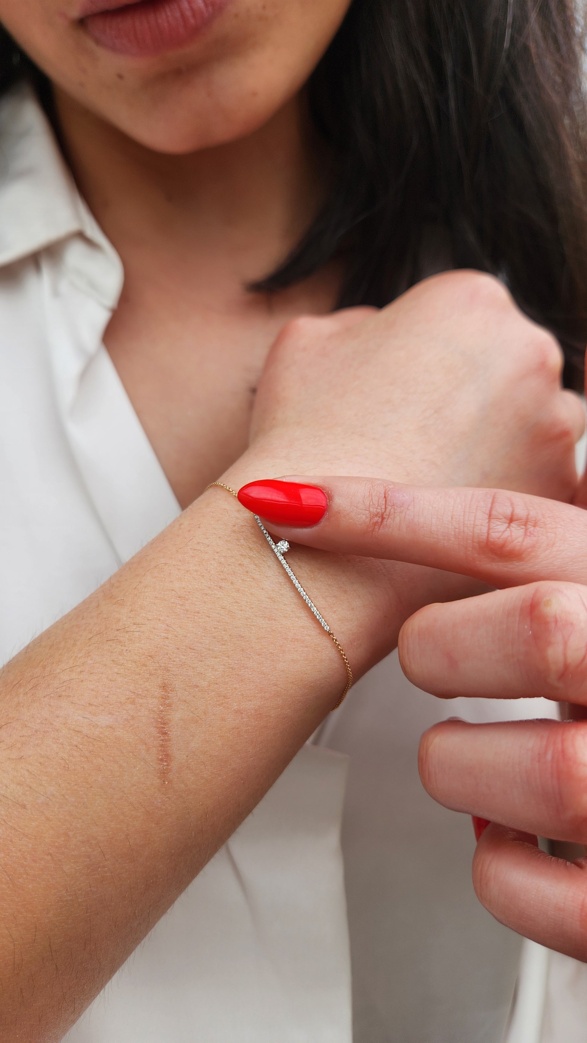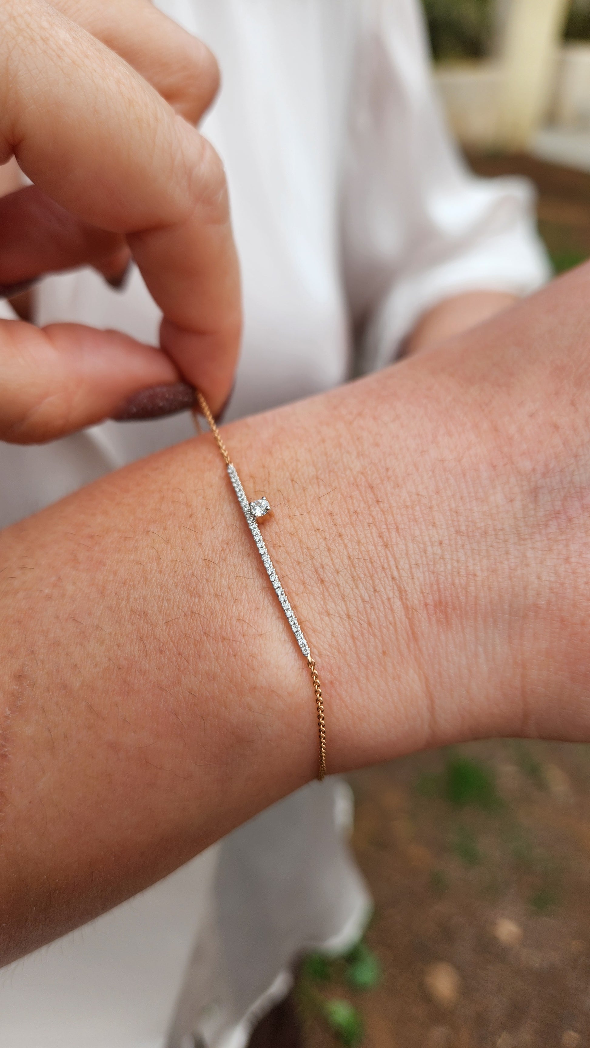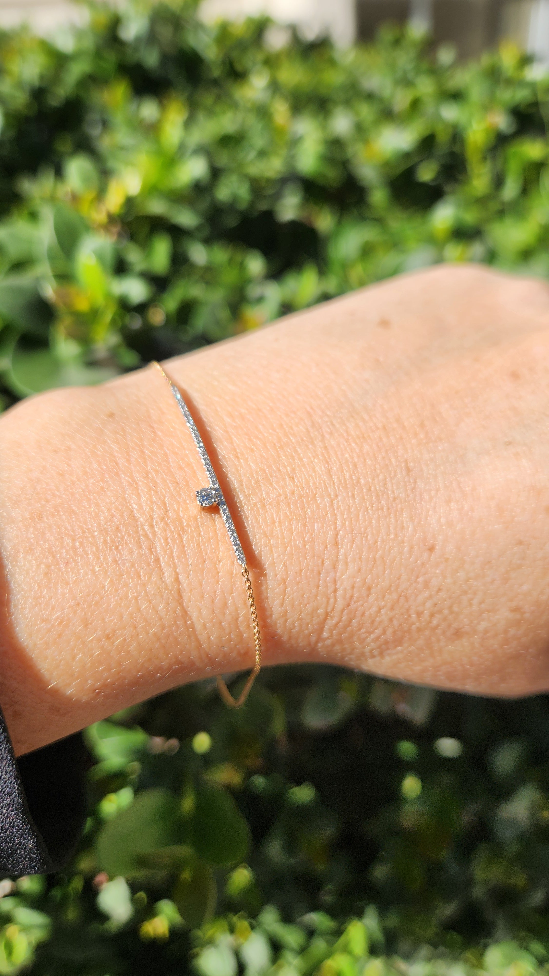 My specially designed pave bar 14K gold diamond bracelet