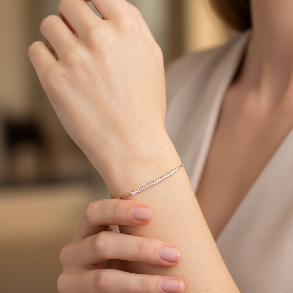 Single row bar diamond bracelet, accented with white sparkling diamonds,
